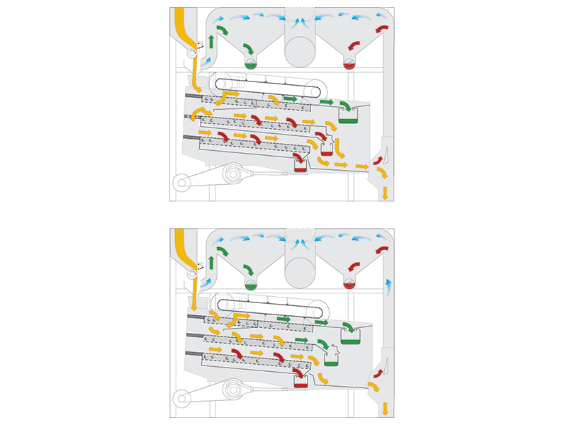 The PETKUS A-Cleaner (Agri Cleaner) is a compact, robust and reliable universal cleaner in the medium capacity category and can be used for pre-, intensive and seed cleaning. Depending on whether the product to be cleaned is seed or commodities, this compact cleaner can process between 4 and 50 t/h and is available in two different sizes. The high standard of cleaning is achieved by a combination of the screening system and the air separation.