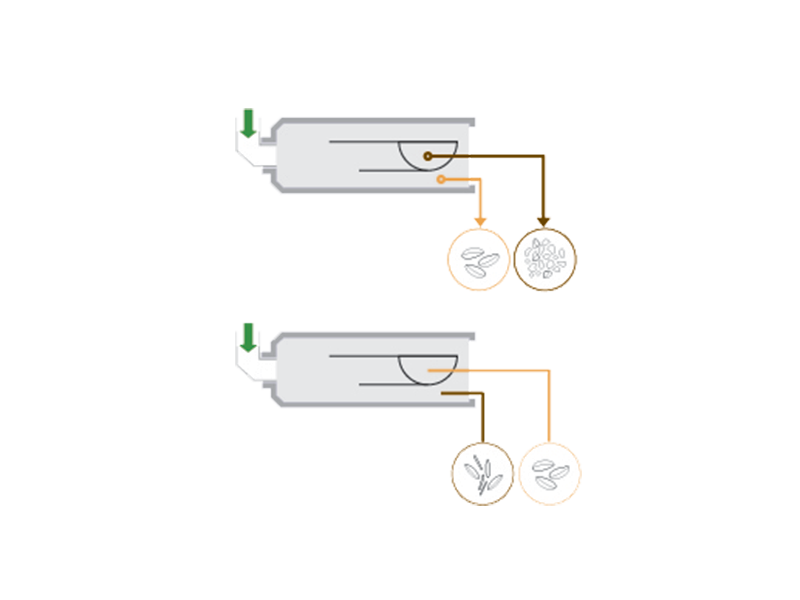 The PETKUS Indented Cylinder Separators ZK / ZL are used for the sorting and separating of seed, grain, fine and vegetable seeds, and similar agricultural, grained and free flowing granular products. The product is separated according to its length. Indented cylinder separators can either be used for separating short grain or long grain, and are available in four different sizes and performance categories between 3 and 12 t/h (based on wheat with 3% impurities). Based on the optimum adjustment of diameter, length and speed of the cylinders, as well as the flow rate, the trieur achieves a maximum quality of product separation.
