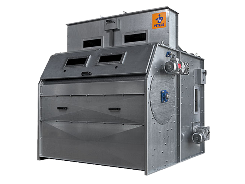 When raw material is delivered to the storage facilities in a damp or soiled condition then cleaning is essential in order to prepare the product for further processing and storage. PETKUS Rotary Drum Cleaners separate foreign particles or coarse impurities from fine and coarse-grained products thoroughly and reliably. The drum cleaner is available in two models with a coarse cleaning performance for corn between 50 t/h and 75 t/h, and for wheat between 70 t/h and 100 t/h.