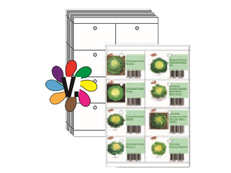 Storm polyester non-adhesive labels are provided on A4 sheets for Laser printing with mounting hole for Ringot Cross Plot Stakes.